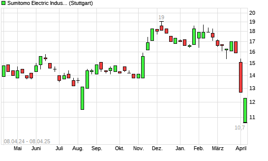Mit dem Rücksetzer auf 11,20 EUR hat die Sumitomo Electric Industries-Aktie (ISIN JP3407400005) am 07.04.2025 ein neues 12-Monats-Tief erreicht und damit den Kurs vom 05.08.2024 eingestellt.Die ...weiterlesen