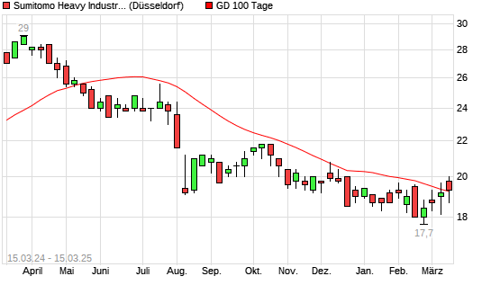 Mit dem Anstieg auf 19,40 EUR hat die Sumitomo Heavy Industries-Aktie am 14.03.2025 die 100-Tage-Linie nach oben gekreuzt.
