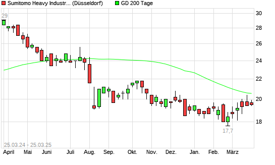 Mit dem Anstieg auf 20,60 EUR hat die Sumitomo Heavy Industries-Aktie am 24.03.2025 die 200-Tage-Linie nach oben gekreuzt.
