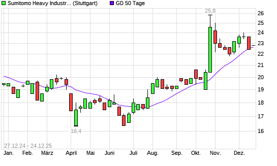Mit dem Anstieg auf 22,40 EUR hat die Sumitomo Heavy Industries-Aktie am 23.12.2025 die 50-Tage-Linie nach oben gekreuzt.