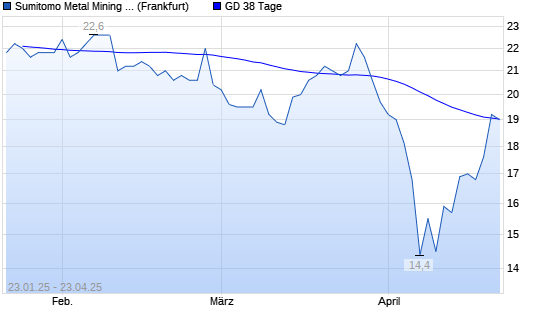 Mit dem Anstieg auf 19,20 EUR hat die Sumitomo Metal Mining-Aktie am 22.04.2025 die 38-Tage-Linie nach oben gekreuzt.