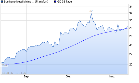 Mit dem Anstieg auf 28,00 EUR hat die Sumitomo Metal Mining-Aktie am 12.11.2025 die 38-Tage-Linie nach oben gekreuzt.