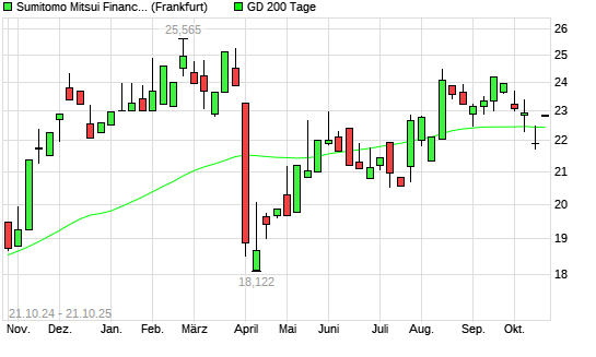 Mit dem Anstieg auf 22,81 EUR hat die Sumitomo Mitsui Financial Group-Aktie am 20.10.2025 die 200-Tage-Linie nach oben gekreuzt.