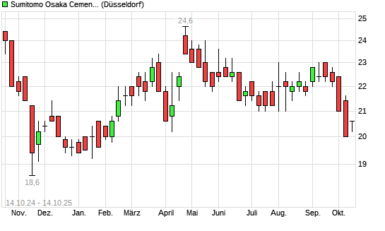 Mit dem Rücksetzer auf 20,40 EUR hat die Sumitomo Osaka Cement-Aktie (ISIN JP3400900001) am 13.10.2025 ein neues 6-Monats-Tief erreicht und damit den Kurs vom 10.10.2025 eingestellt.