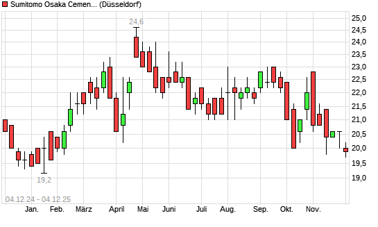 Mit dem Rücksetzer auf 19,90 EUR hat die Sumitomo Osaka Cement-Aktie (ISIN JP3400900001) am 03.12.2025 ein neues 6-Monats-Tief erreicht und damit den Kurs vom 11.11.2025 eingestellt.