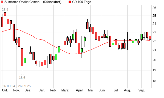 Mit dem Anstieg auf 22,60 EUR hat die Sumitomo Osaka Cement-Aktie am 25.09.2025 die 100-Tage-Linie nach oben gekreuzt.