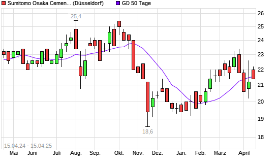 Mit dem Anstieg auf 21,80 EUR hat die Sumitomo Osaka Cement-Aktie am 14.04.2025 die 50-Tage-Linie nach oben gekreuzt.