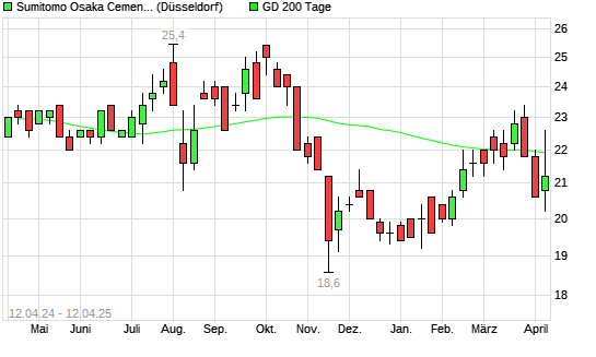 Mit dem Rücksetzer auf 21,00 EUR hat die Sumitomo Osaka Cement-Aktie am 11.04.2025 die 200-Tage-Linie nach unten gekreuzt.