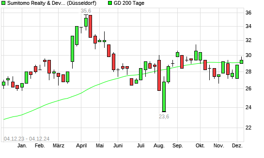 Mit dem Anstieg auf 29,80 EUR hat die Sumitomo Realty & Development-Aktie am 03.12.2024 die 200-Tage-Linie nach oben gekreuzt.