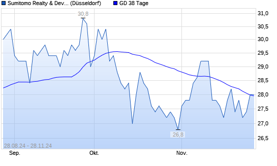 Mit dem Anstieg auf 28,20 EUR hat die Sumitomo Realty & Development-Aktie am 27.11.2024 die 38-Tage-Linie nach oben gekreuzt.