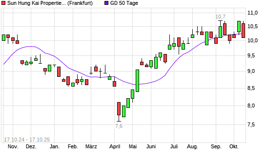 Mit dem Rücksetzer auf 10,20 EUR hat die Sun Hung Kai Properties-Aktie am 16.10.2025 die 50-Tage-Linie nach unten gekreuzt.