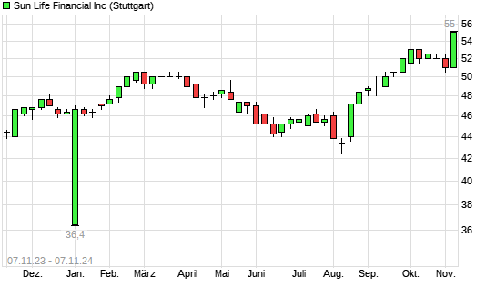 Mit dem Anstieg auf 54,50 EUR hat die Sun Life Financial-Aktie (ISIN CA8667961053) am 06.11.2024 ein neues All-Time-High erreicht und damit den Kurs vom 29.10.2024 eingestellt.