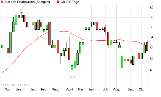 Mit dem Rücksetzer auf 51,50 EUR hat die Sun Life Financial-Aktie am 16.10.2025 die 100-Tage-Linie nach unten gekreuzt.