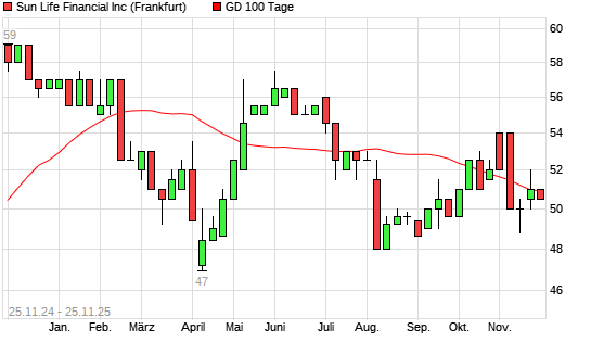 Mit dem Rücksetzer auf 50,50 EUR hat die Sun Life Financial-Aktie am 24.11.2025 die 100-Tage-Linie nach unten gekreuzt.