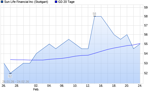 Mit dem Rücksetzer auf 54,00 EUR hat die Sun Life Financial-Aktie am 23.02.2026 die 20-Tage-Linie nach unten gekreuzt.