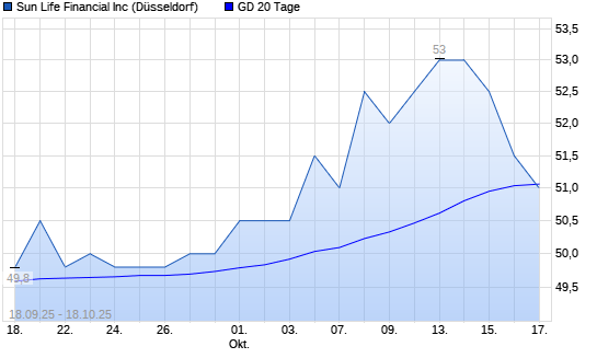 Mit dem Rücksetzer auf 51,00 EUR hat die Sun Life Financial-Aktie am 17.10.2025 die 20-Tage-Linie nach unten gekreuzt.Die Sun Life Financial-Aktie befindet sich seit dem 15.10.2025 im langfristigen ...weiterlesen