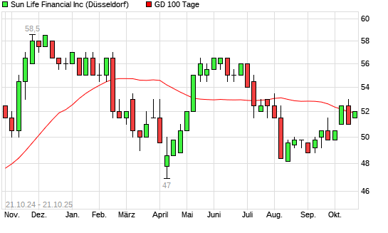 Mit dem Anstieg auf 52,00 EUR hat die Sun Life Financial-Aktie am 20.10.2025 die 100-Tage-Linie nach oben gekreuzt.Die Sun Life Financial-Aktie befindet sich seit dem 15.10.2025 im langfristigen ...weiterlesen