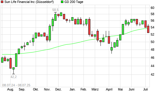 Mit dem Rücksetzer auf 52,50 EUR hat die Sun Life Financial-Aktie am 07.07.2025 die 200-Tage-Linie nach unten gekreuzt.Die Sun Life Financial-Aktie befand sich seit dem 03.07.2025 im langfristigen ...weiterlesen