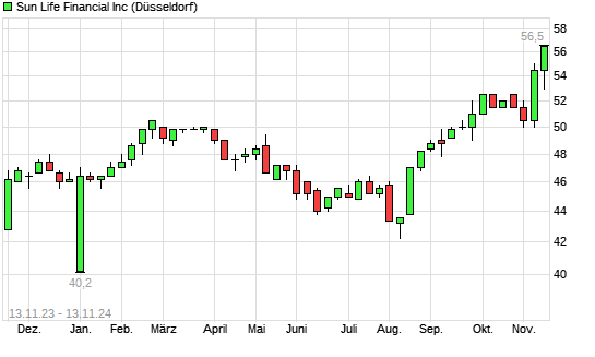 Mit dem Anstieg auf 56,00 EUR hat die Sun Life Financial-Aktie (ISIN CA8667961053) am 12.11.2024 ein neues All-Time-High erreicht und damit den Kurs vom 11.11.2024 eingestellt.Die Sun Life Financial-Aktie ...weiterlesen