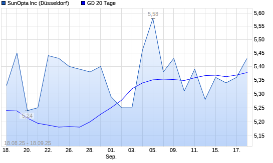 Mit dem Anstieg auf 5,37 EUR hat die SunOpta-Aktie am 17.09.2025 die 20-Tage-Linie nach oben gekreuzt.