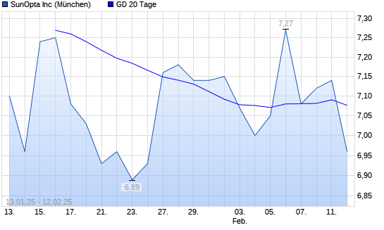Mit dem Rücksetzer auf 6,97 EUR hat die SunOpta-Aktie am 11.02.2025 die 20-Tage-Linie nach unten gekreuzt.
