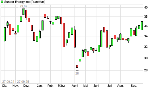 Mit dem Anstieg auf 36,95 EUR hat die Suncor Energy-Aktie (ISIN CA8672241079) am 26.09.2025 ein neues 6-Monats-Hoch erreicht und damit den Kurs vom 18.09.2025 eingestellt.