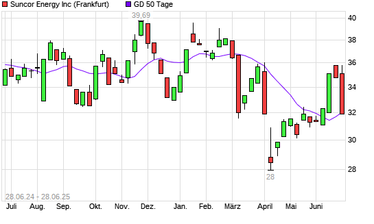 Mit dem Rücksetzer auf 31,90 EUR hat die Suncor Energy-Aktie am 27.06.2025 die 50-Tage-Linie nach unten gekreuzt.