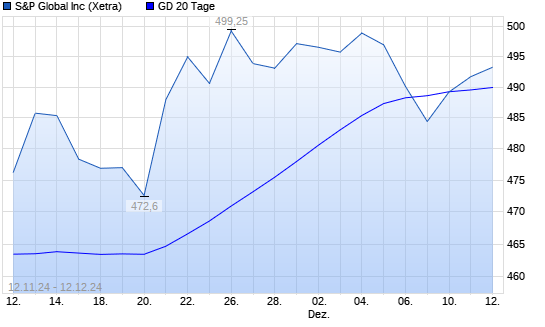 Mit dem Anstieg auf 493,90 EUR hat die S&P Global-Aktie am 11.12.2024 die 20-Tage-Linie nach oben gekreuzt.