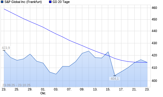 Mit dem Anstieg auf 416,50 EUR hat die S&P Global-Aktie am 22.10.2025 die 20-Tage-Linie nach oben gekreuzt.