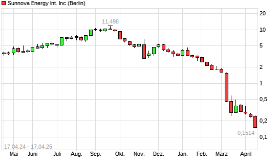 Mit dem Rücksetzer auf 0,16 EUR hat die Sunnova Energy International-Aktie (ISIN US86745K1043) am 16.04.2025 ein neues All-Time-Low erreicht und damit den Kurs vom 15.04.2025 eingestellt.