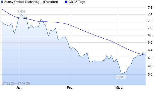 Mit dem Anstieg auf 6,34 EUR hat die Sunny Optical-Aktie am 16.03.2026 die 38-Tage-Linie nach oben gekreuzt.
