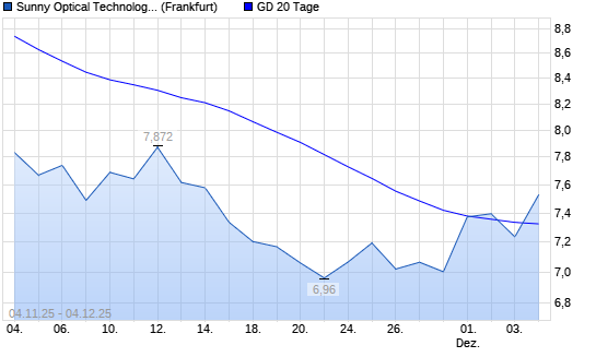 Mit dem Rücksetzer auf 7,23 EUR hat die Sunny Optical-Aktie am 03.12.2025 die 20-Tage-Linie nach unten gekreuzt.