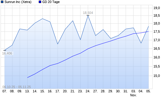 Mit dem Rücksetzer auf 16,90 EUR hat die Sunrun-Aktie am 04.11.2025 die 20-Tage-Linie nach unten gekreuzt.