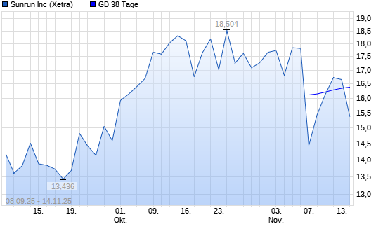 Mit dem Rücksetzer auf 16,13 EUR hat die Sunrun-Aktie am 13.11.2025 die 38-Tage-Linie nach unten gekreuzt.