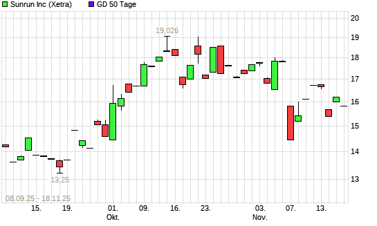 Mit dem Rücksetzer auf 15,95 EUR hat die Sunrun-Aktie am 17.11.2025 die 50-Tage-Linie nach unten gekreuzt.