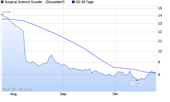 Mit dem Rücksetzer auf 8,19 EUR hat die Surgical Science Sweden-Aktie am 24.10.2025 die 38-Tage-Linie nach unten gekreuzt.