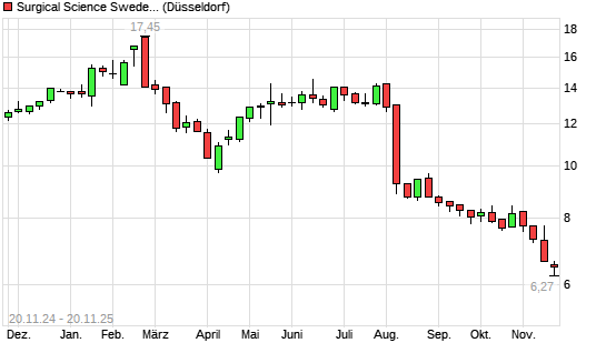 Mit dem Rücksetzer auf 6,39 EUR hat die Surgical Science Sweden-Aktie (ISIN SE0014428512) am 19.11.2025 ein neues 5-Jahres-Tief erreicht und damit den Kurs vom 18.11.2025 eingestellt.Die ...weiterlesen