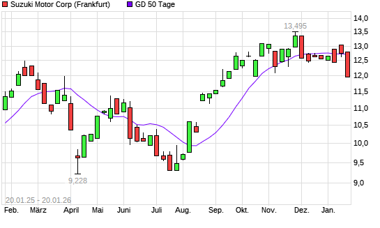 Mit dem Anstieg auf 12,80 EUR hat die Suzuki Motor-Aktie am 19.01.2026 die 50-Tage-Linie nach oben gekreuzt.