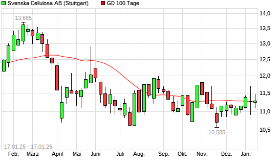 Mit dem Anstieg auf 11,25 EUR hat die Svenska Cellulosa B-Aktie am 16.01.2026 die 100-Tage-Linie nach oben gekreuzt.