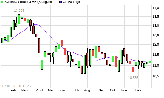 Mit dem Anstieg auf 11,24 EUR hat die Svenska Cellulosa B-Aktie am 30.12.2025 die 50-Tage-Linie nach oben gekreuzt.