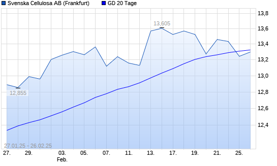 Mit dem Rücksetzer auf 13,24 EUR hat die Svenska Cellulosa B-Aktie am 25.02.2025 die 20-Tage-Linie nach unten gekreuzt.