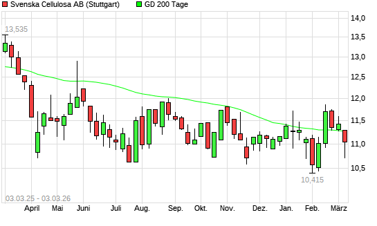 Mit dem Rücksetzer auf 11,01 EUR hat die Svenska Cellulosa B-Aktie am 02.03.2026 die 200-Tage-Linie nach unten gekreuzt.