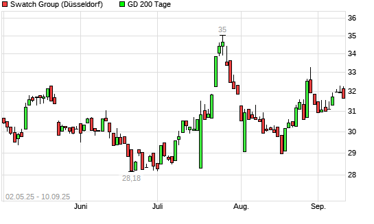 Mit dem Anstieg auf 32,26 EUR hat die Swatch Group-Aktie am 09.09.2025 die 200-Tage-Linie nach oben gekreuzt.