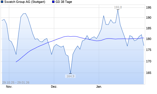 Mit dem Anstieg auf 181,70 EUR hat die Swatch Group Inhaber-Aktien-Aktie am 28.01.2026 die 38-Tage-Linie nach oben gekreuzt.