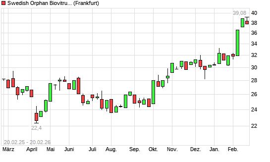 Mit dem Anstieg auf 39,08 EUR hat die Swedish Orphan Biovi-Aktie (ISIN SE0000872095) am 19.02.2026 ein neues All-Time-High erreicht und damit den Kurs vom 13.02.2026 eingestellt.