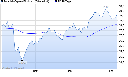 Mit dem Rücksetzer auf 28,10 EUR hat die Swedish Orphan Biovi-Aktie am 05.02.2025 die 38-Tage-Linie nach unten gekreuzt.