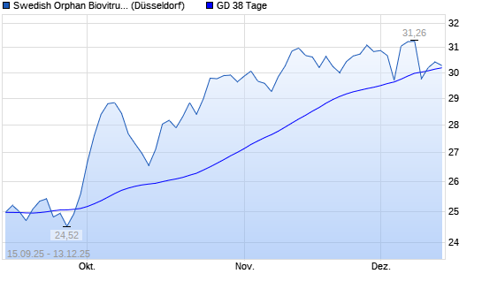 Mit dem Rücksetzer auf 30,10 EUR hat die Swedish Orphan Biovi-Aktie am 12.12.2025 die 38-Tage-Linie nach unten gekreuzt.