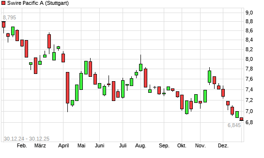 Mit dem Rücksetzer auf 6,78 EUR hat die Swire Pacific A-Aktie (ISIN HK0019000162) am 29.12.2025 ein neues 12-Monats-Tief erreicht und damit den Kurs vom 22.12.2025 eingestellt.
