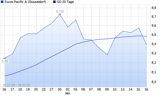 Mit dem Anstieg auf 8,51 EUR hat die Swire Pacific A-Aktie am 15.01.2025 die 20-Tage-Linie nach oben gekreuzt.