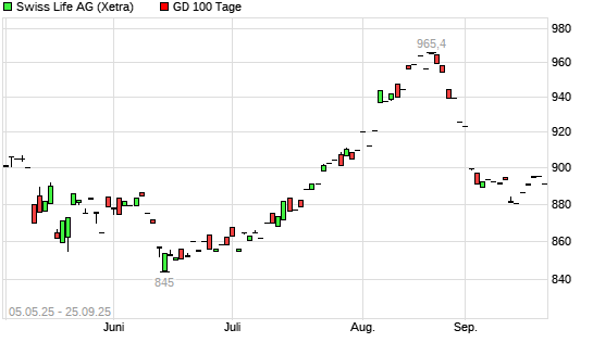 Mit dem Anstieg auf 897,40 EUR hat die Swiss Life-Aktie am 25.09.2025 die 100-Tage-Linie nach oben gekreuzt.